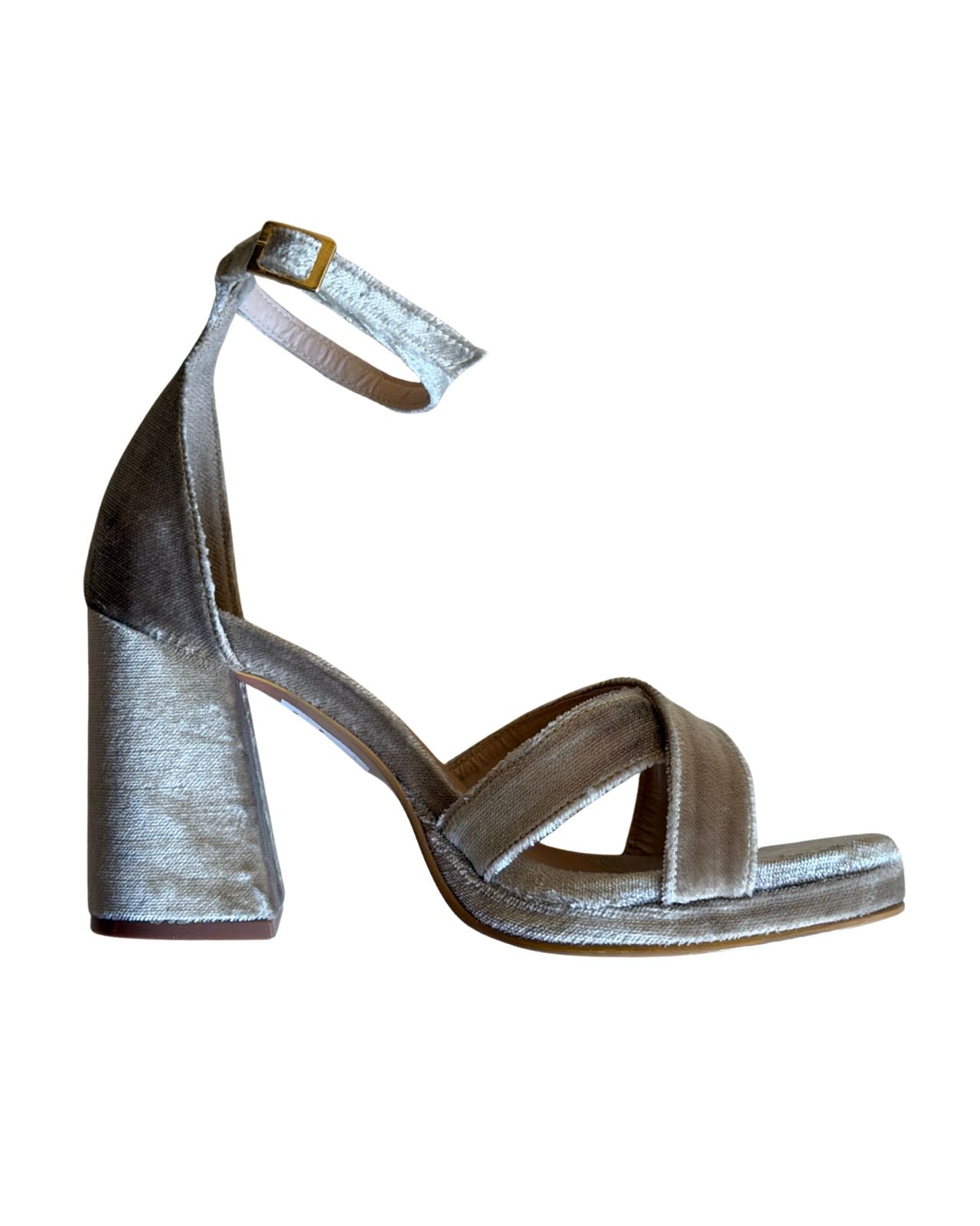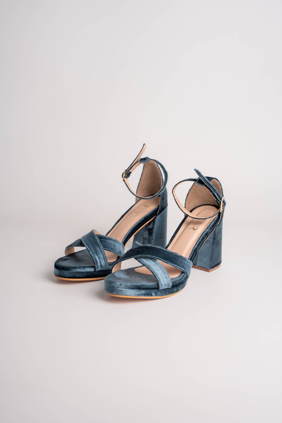 Modelo disponible en terciopelo: color azul índigo y champagne