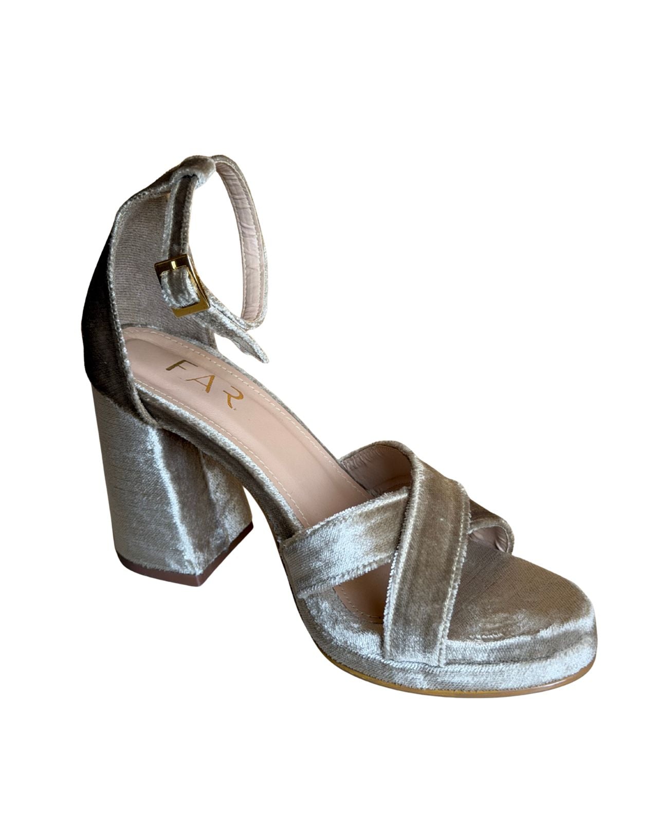 Sandalia FAR Modelo Augusta, diseñada para ofrecer un equilibrio perfecto entre elegancia, estabilidad y comodidad, manteniendo una estética sobria y atemporal característica de FAR.