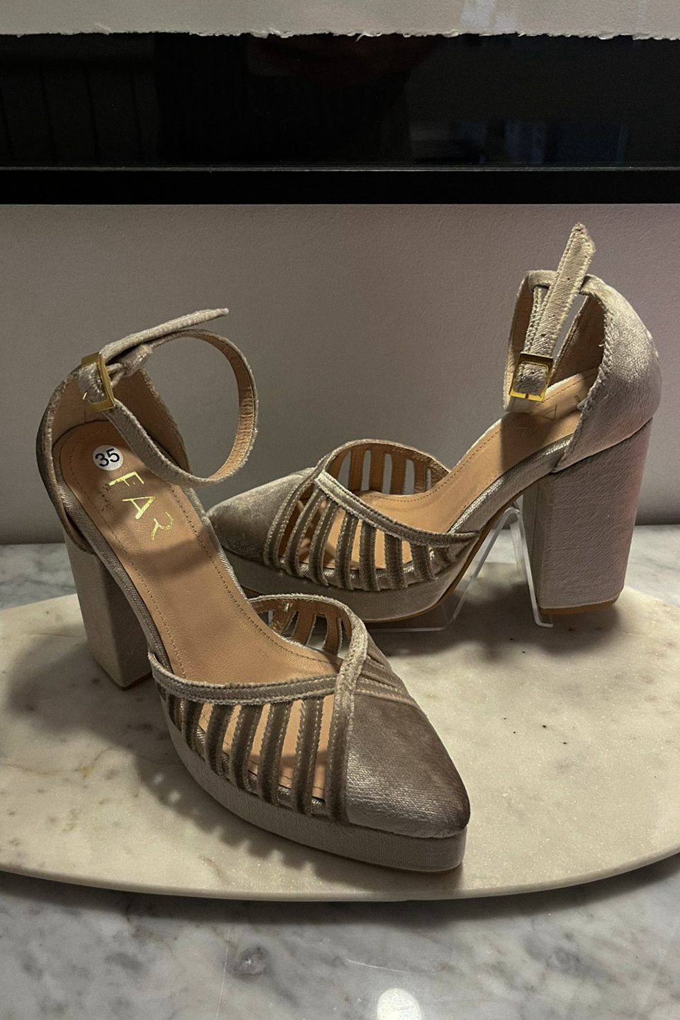Un clásico renovado. Praga combina la elegancia de una punta cerrada con el aire liviano de sus líneas abiertas. Su taco de 10 cm y plataforma de 2 cm te elevan con comodidad, ideal para bailar, caminar o simplemente brillar.