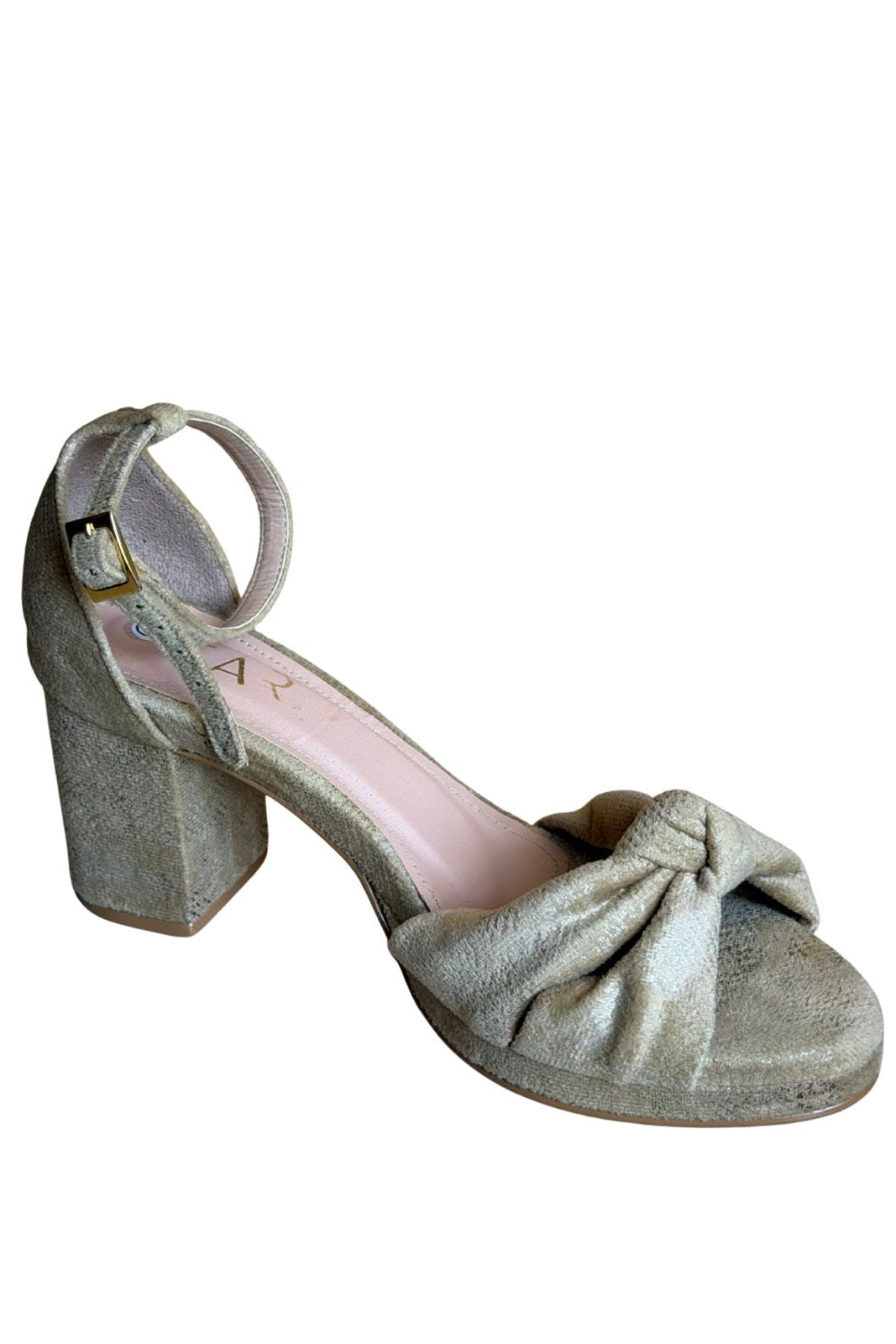 Tacón de 8cm con 1 de plataforma, con franjas cruzadas y terminación en nudo, modelo clásico y elegante que te acompaña en cualquier evento.