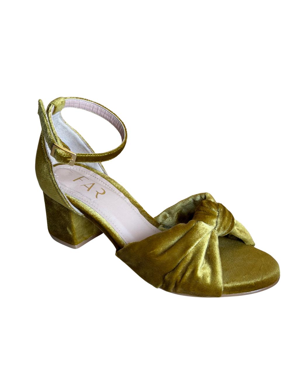 Sandalia de vestir FAR Modelo Elena, con tacón de 5 cm de altura aproximada, considerando una leve variación por la tapilla inferior. Diseñada para entregar estabilidad, elegancia y comodidad, ideal para uso prolongado en eventos o jornadas largas.