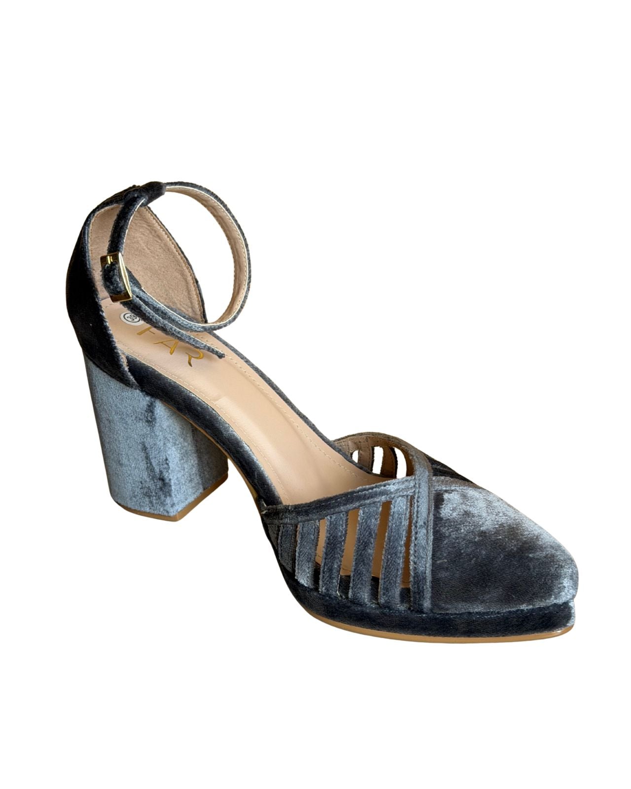Un clásico renovado. Praga combina la elegancia de una punta cerrada con el aire liviano de sus líneas abiertas. Su taco de 8 cm y plataforma de 1 cm te elevan con comodidad, ideal para bailar, caminar o simplemente brillar.